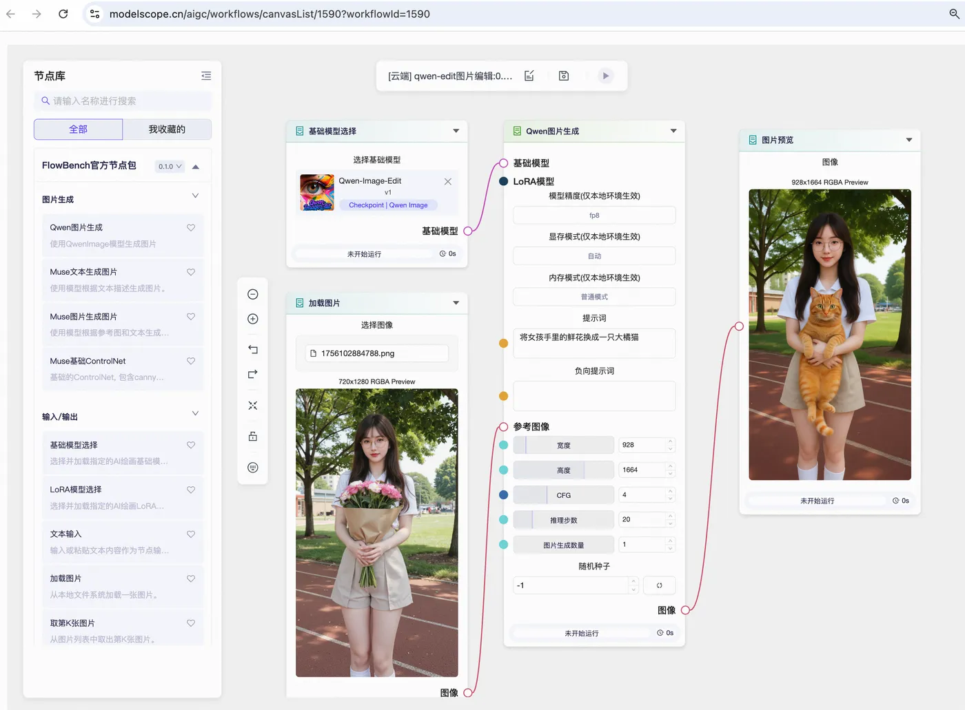 - 使用 Qwen-Image-Edit 模型,实现文本驱动的图像编辑。