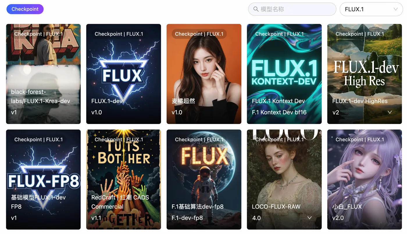 - 支持 FLUX.1 系列模型,包括社区微调的模型版本。