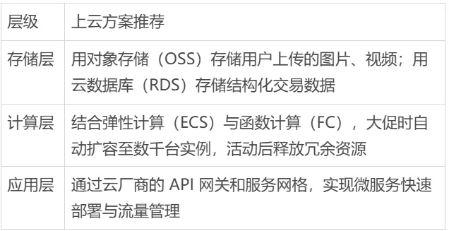 根据上面说的这些,针对5类常见的业务场景,给大家说说具体的上云策略和方案: