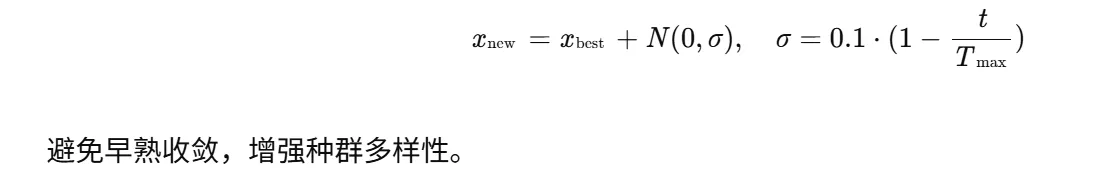 在迭代后期(每10代)对全局最优粒子进行高斯变异: