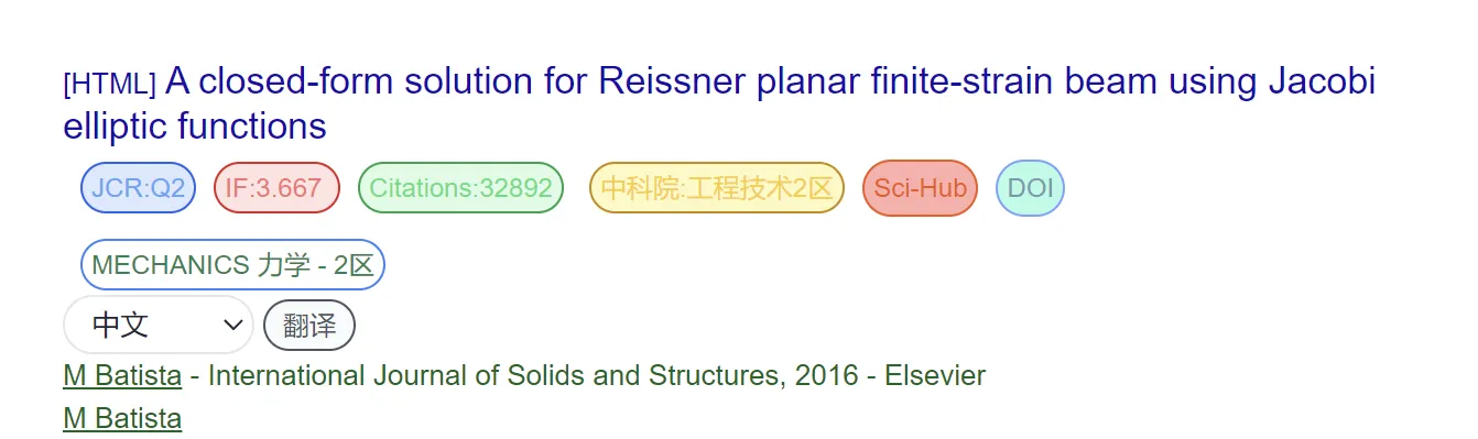 - 获得封闭形式解:将确定的参数代入雅可比椭圆函数,得到Reissner梁问题的封闭形式解。