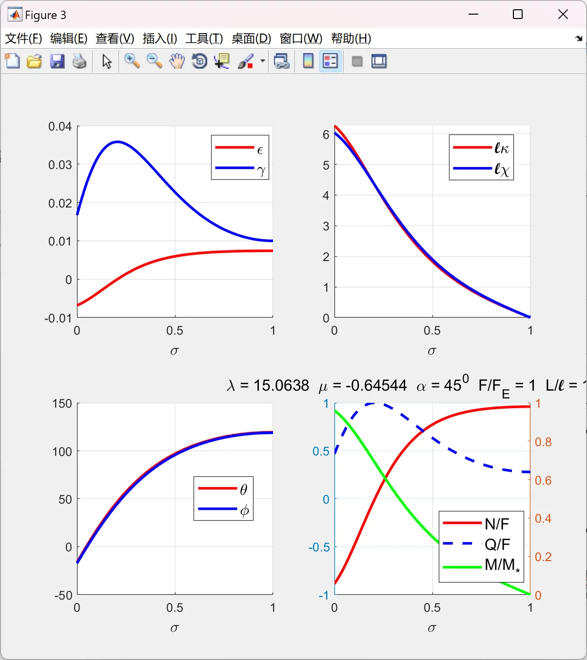 为了验证雅可比椭圆函数解的有效性,我们考虑一个具体的数值示例。假设一个Reissner梁在端部受到轴向压缩载荷和弯矩作用,我们使用雅可比椭圆函数解求解该梁的屈曲和屈曲后行为。