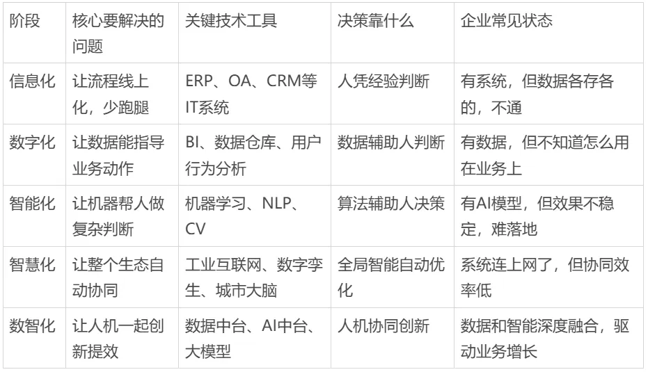 有人说“刚搭完数据中台,应该算数字化了吧?”,也有人说“我们用上AI客服了,这就是智能化吧?”