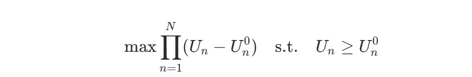 其中,Un为参与者n的效用,Un0为不合作时的基准效用(分歧点)。