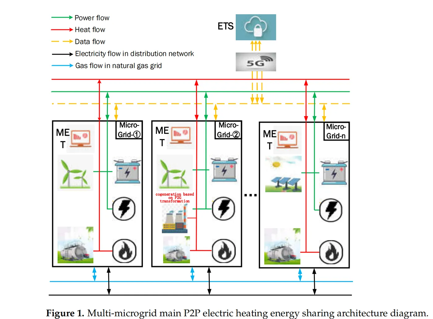 《中国至2060年碳中和研究报告》指出:“低碳零碳技术是实现碳中和目标的关键,特别是在这些方面,如捕集、利用和储存(CCUS),负排放和碳汇”。促进可再生能源的有效利实现电力系统的低碳、清洁能源供应,这些将是一举两得今后的重点研究方向。微电网是整合生产者和销售者的重要途径。在内部,包含各种分布式电源和多种类型的负载,可以促进能源的自我生产和自我消耗。同时,对外也可以与电网互动,实现供销一体化。点对点(P2P)微电网间的能源交易可以有效降低微电网的用电成本;提高新能源利用率,减少碳排放。