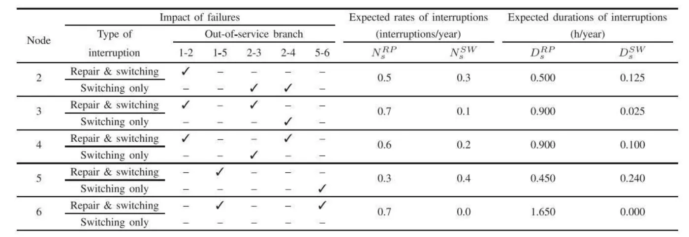 负荷节点因此受到两种类型的中断影响:1)修复和开关切换中断,直到故 障修复负荷节点才会恢复;2)仅受限于开关动作,开关切换完成故障就会修复。