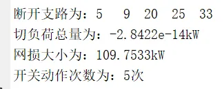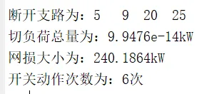 | 算法类型 | 总失电负荷(kW) | 网损(kW) | 开关动作次数 | 收敛代数 |