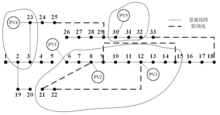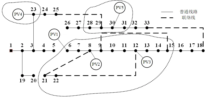 采用IEEE 33节点系统进行验证,系统参数如下: