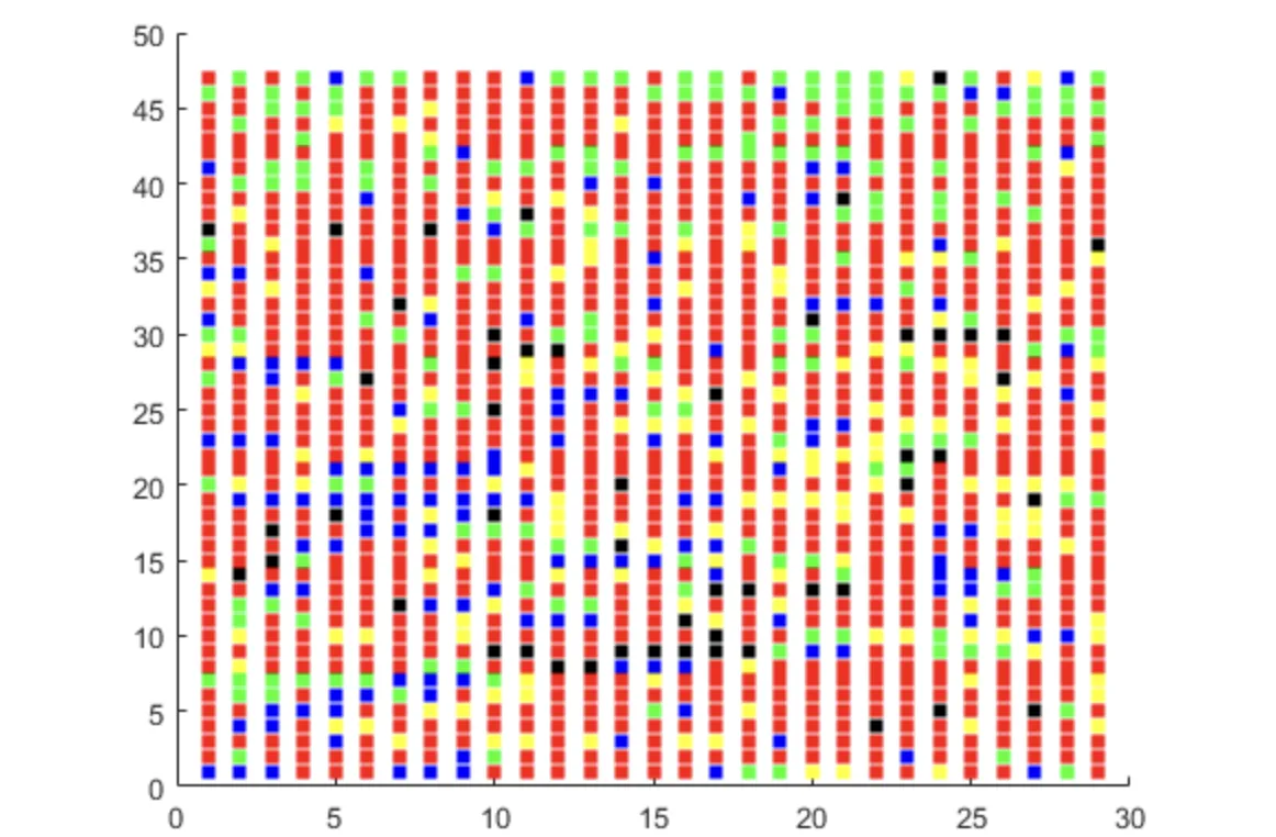 - 初始群体生成:随机产生N个初始串结构数据,每个串结构数据称为一个个体,N个个体构成了一个群体。