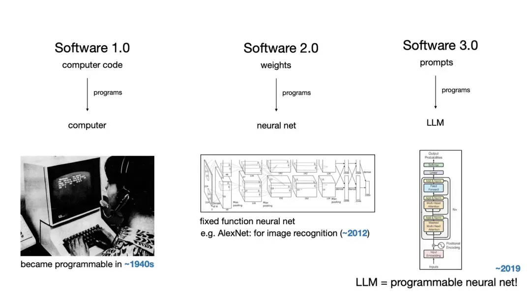 由于软件开发的对象变化,从传统的 Linux 操作系统变为 LLM,那么新的软件开发一些方法论也会有对应的改变。