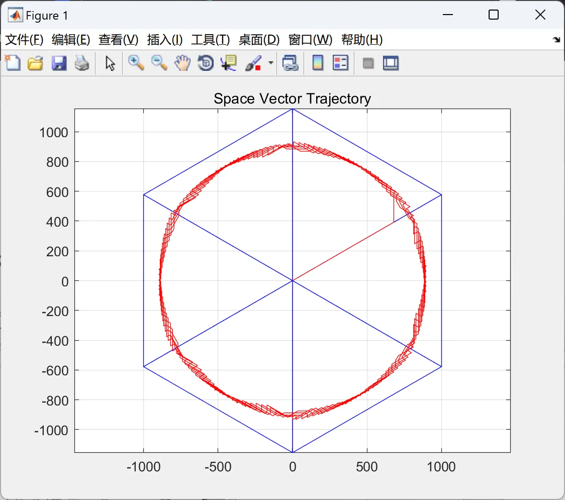 - 根据所需的输出电压,在电压矢量空间中选择合适的矢量。这通常通过比较所需输出电压的大小和方向来实现。