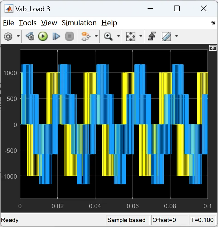 - 通过仿真可以观察输出电压的波形、谐波含量等性能指标,从而评估SVPWM模型的性能。
