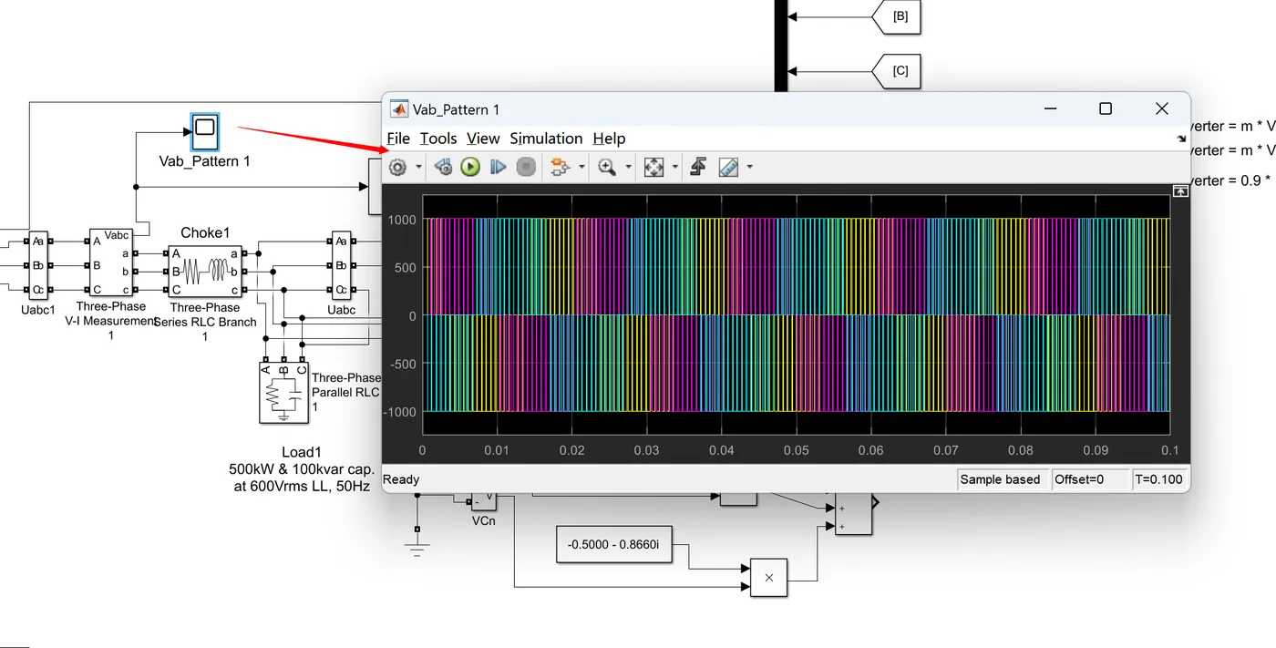 在SVPWM模型中,调制比和开关频率是两个关键参数,它们对输出性能具有重要影响: