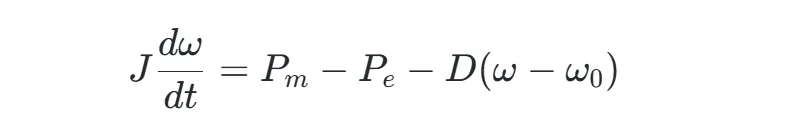 - 有功-频率控制:模拟同步发电机转子运动方程(式1),通过虚拟惯量 JJ 和阻尼系数 DD 调节功率-频率响应: