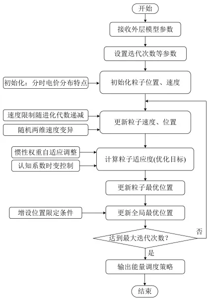 编辑 - 内层模型:在给定容量配置下,以储能电池25小时荷电状态(SOC)为优化参数,以日运行收益最大为目标,通过改进PSO算法求解能量调度策略。