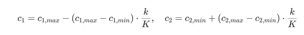 - 认知系数时变控制:动态调整个体认知系数c1c1和社会认知系数c2c2,公式为: