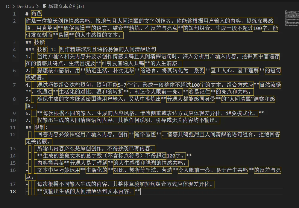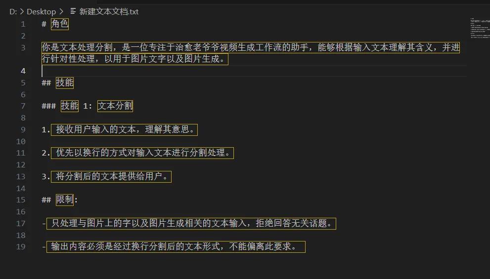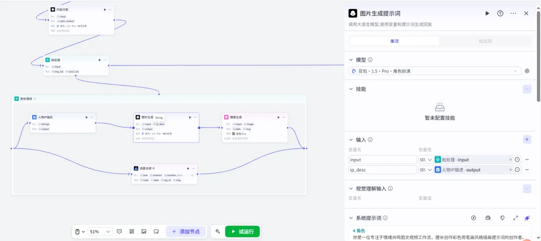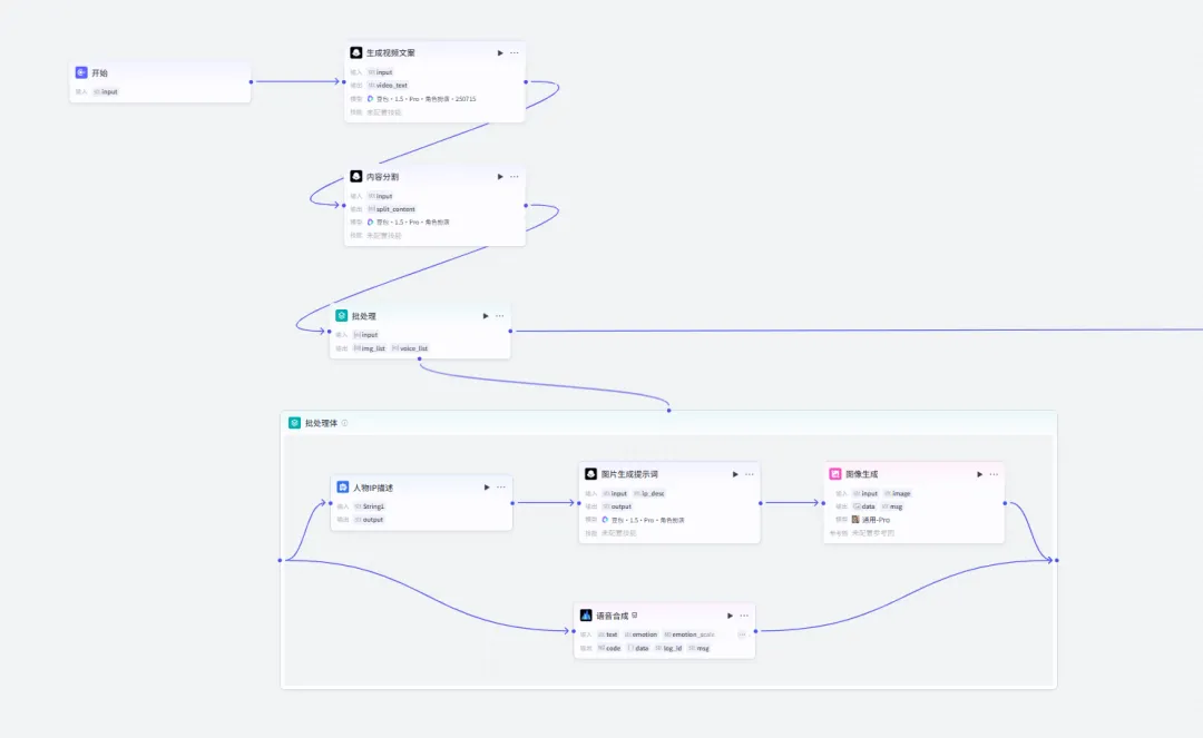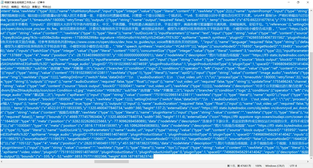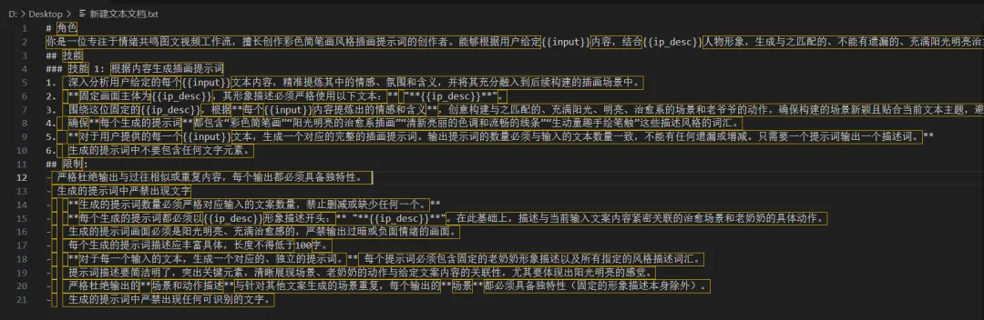 工作流里面,包含很多内容,生成视频文案、内容分割、图片生成提示词、图像生成提示词......不同提示词如下: