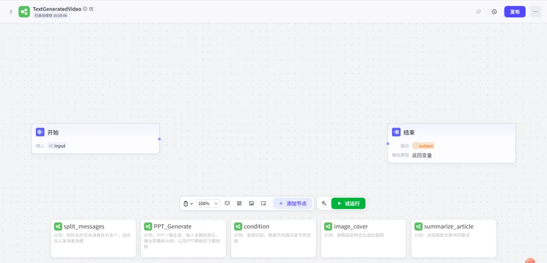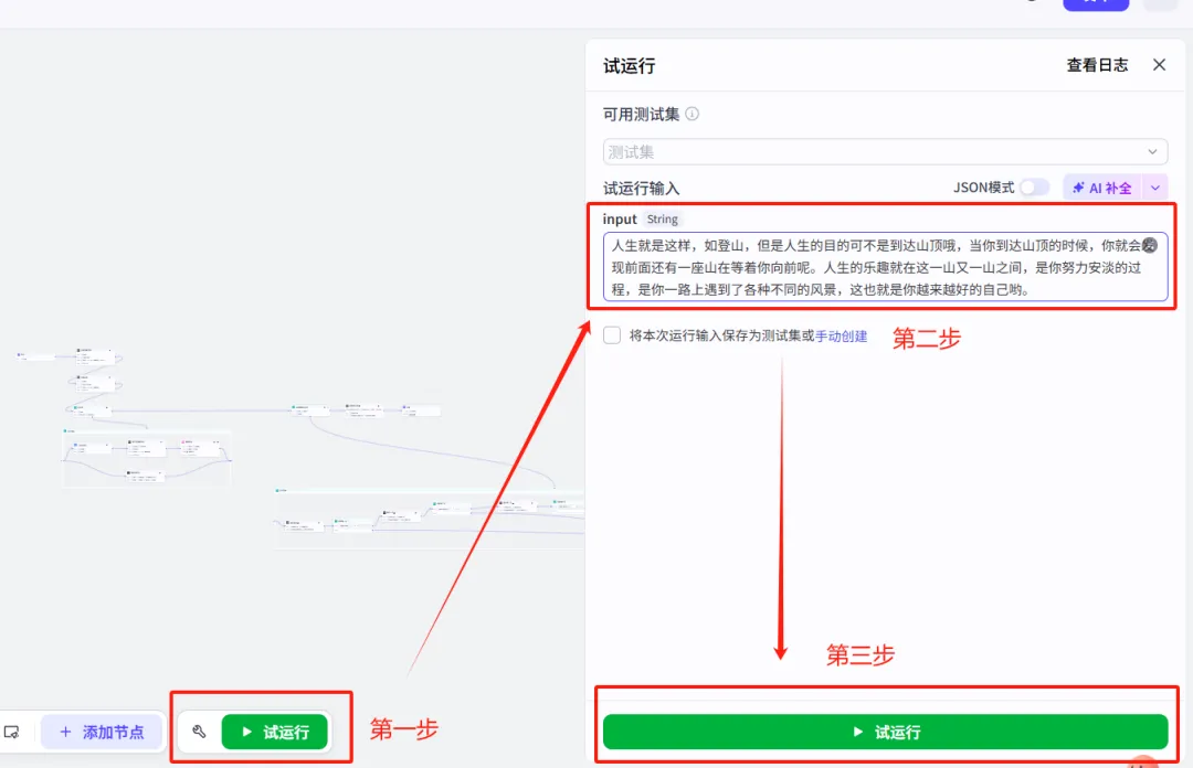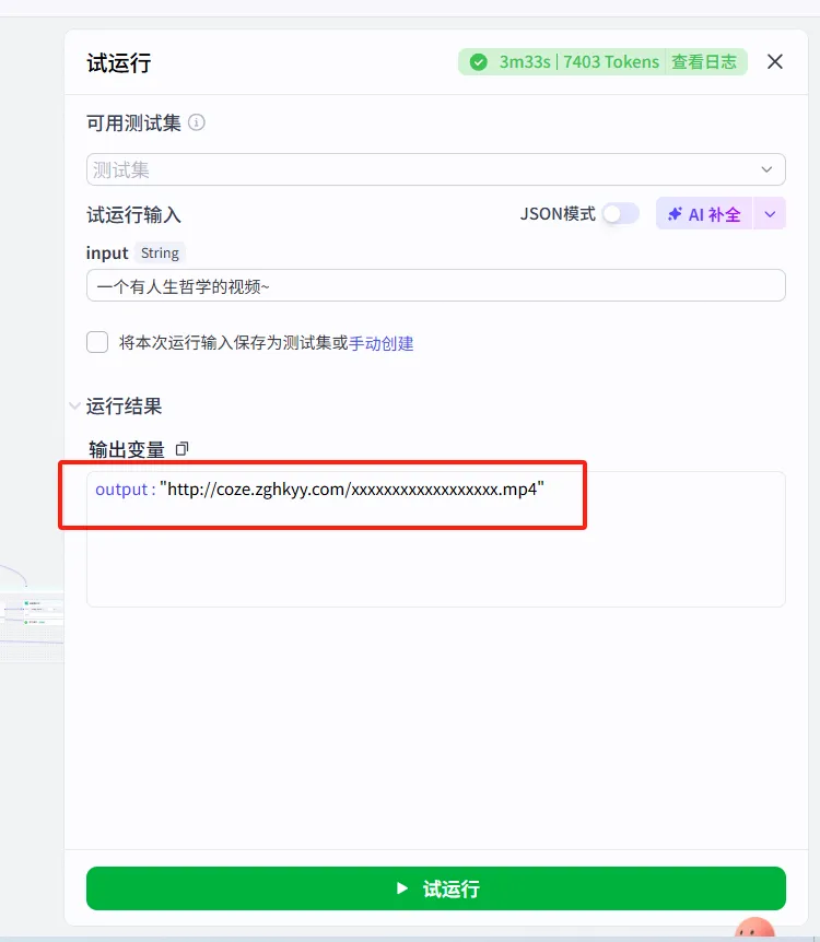 点击【试运行】-输入视频类型相关的文案-【试运行】,即可满足。