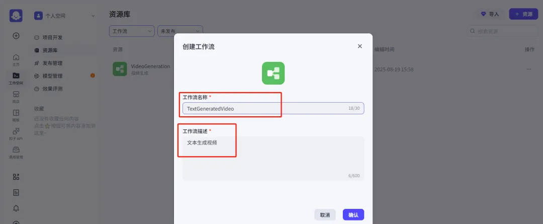 网址:https://www.coze.cn/在首页,选择【工作空间】、【资源库】,
