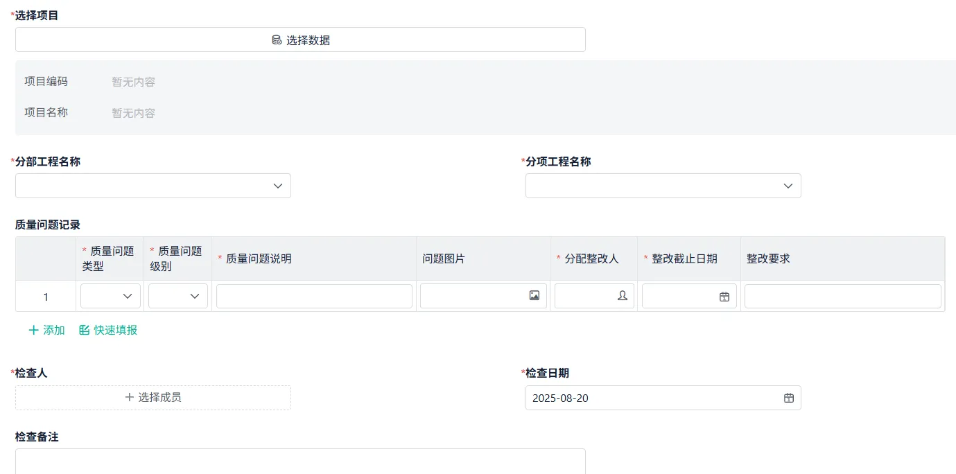 - 角色示例:项目管理员、QA检查员、施工班组长、整改负责人、总控/监理。