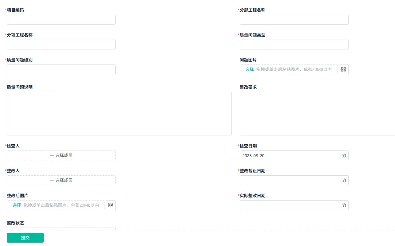 - 支持批量导入/导出,支持问题标签(材料、施工、设计等)