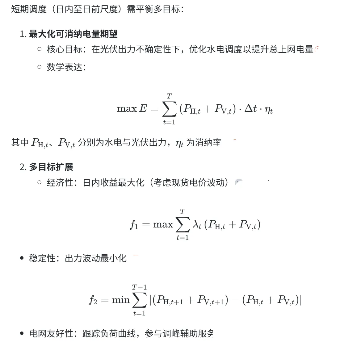 - 多时间尺度协同:短期调度与中长期水库调度的耦合(如蓄能增量最大化)。