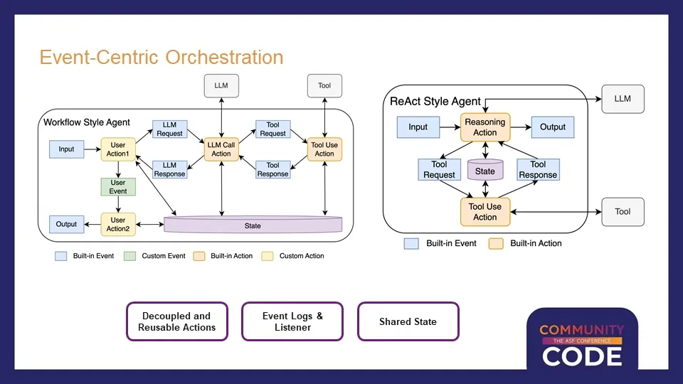 稳定性是另一个重要要求。与对话式智能体不同,事件驱动的智能体需要7×24小时长时间运行,没有人能够持续监控,因此必须具备强大的容错和自我恢复能力。数据处理能力也必不可少,因为在整个应用的端到端流程中,往往伴随着AI模型的非结构化处理和传统的结构化数据处理。