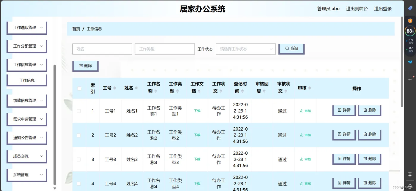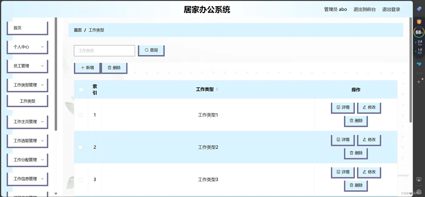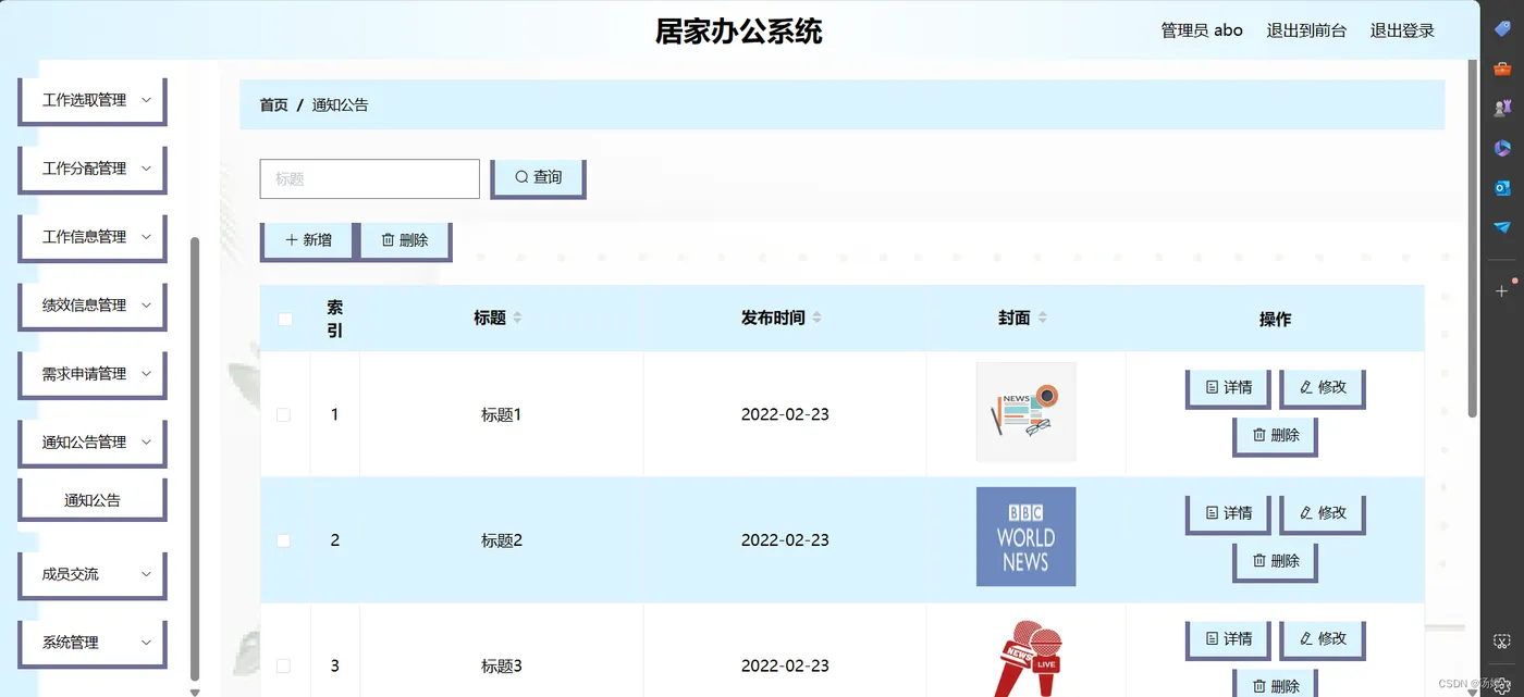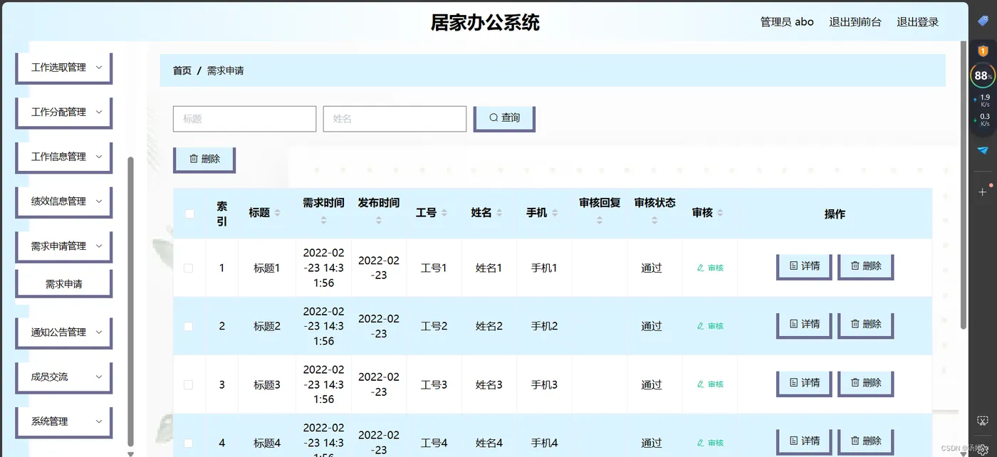 信息数据的处理完全依赖人工进行操作,会耗费大量的人工成本,特别是面对大量的数据信息时,传统人工操作不仅不能对数据的出错率进行保证,还容易出现各种信息资源的低利用率与低安全性问题。更有甚者,耽误大量的宝贵时间,尤其是对信息的更新,归纳与统计更是耗财耗力的过程。所以电子化信息管理的出现就能缓解以及改变传统人工方式面临的处境,一方面可以确保信息数据在短时间被高效处理,还能节省人力成本,另一方面可以确保信息数据的安全性,可靠性,并可以实现信息数据的快速检索与修改操作,这些优点是之前的旧操作模式无法比拟的。因此居家办公系统为数据信息的管理模式的升级与改革提供了重要的窗口。