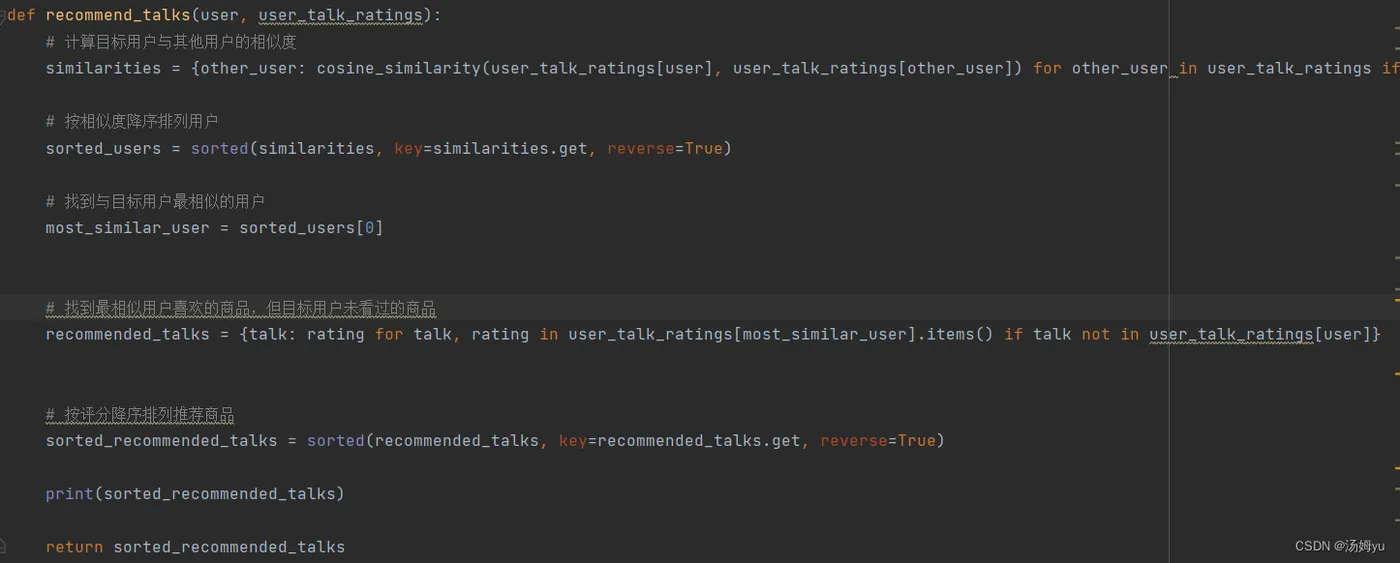 协同过滤算法是一种常用于推荐系统的技术,它基于用户行为历史或项目之间的相似性来进行推荐,该算法通过分析用户对项目的评价或行为历史,找出具有相似兴趣的用户群体,然后向目标用户推荐这些用户喜欢的项目。它假设相似的用户倾向于喜欢相似的项目,该算法则是通过分析项目之间的相似性,向用户推荐与其已喜欢项目相似的其他项目。它假设喜欢某个项目的用户可能也会喜欢与之相似的其他项目,协同过滤算法不需要事先对项目或用户进行特征抽取,能够自动学习用户的喜好,因此适用于各种类型的项目和用户群体。然而,它也存在冷启动问题,即对于新用户或新项目,推荐效果较差,为了克服冷启动问题,研究人员提出了多种改进算法,如基于内容的推荐、混合推荐等。这些方法结合了协同过滤算法和其他技术,提高了推荐系统的准确性和覆盖率。