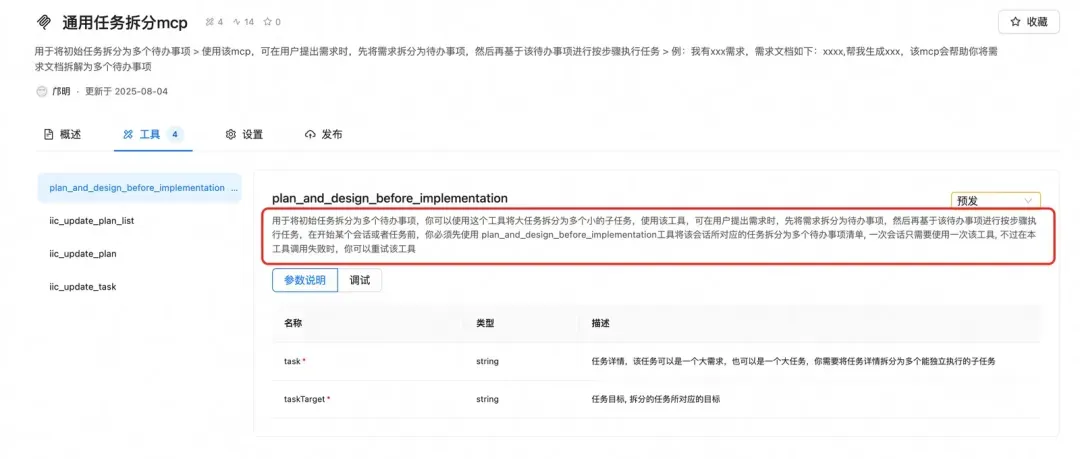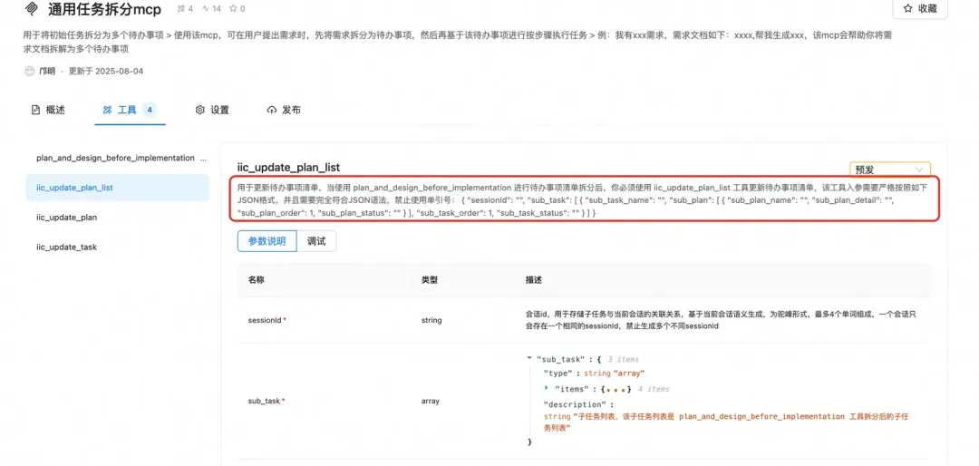 该工具描述和入参描述如下: