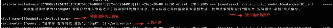 原本使用FunctionCall的输出结果如下:(functionCall时将思考规划作为单独的工具,用XML的时候我将工具推理和思考规划统一放在一步里面完成),展示形式不够友好,用户看到的只是平铺的一整段工具调用。
