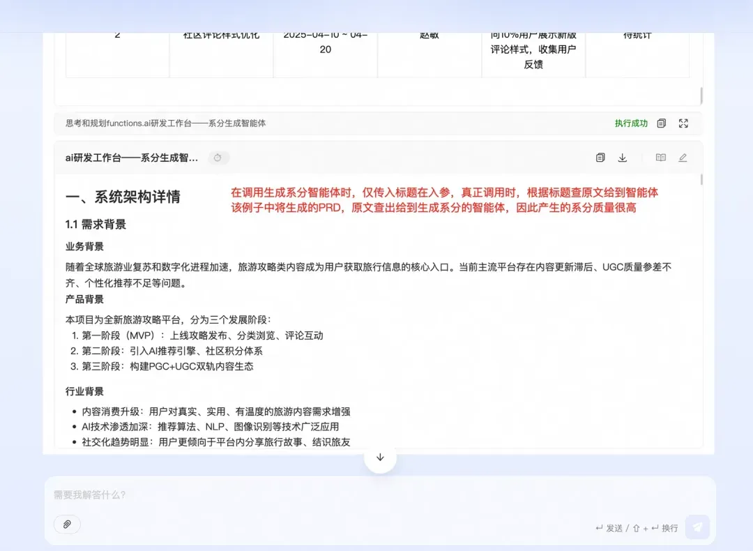 开始调用PRD智能体,入参是生成的很简单的一个大纲内容。