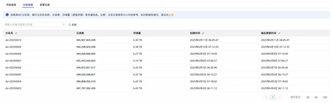 类似地,其它7个过滤条件和JOIN Key也与上图类似,虽然代码很长,其实本身逻辑十分简单。但平静的水面下往往暗流涌动,我们点进其中1张源表查看其表组成和分区信息: