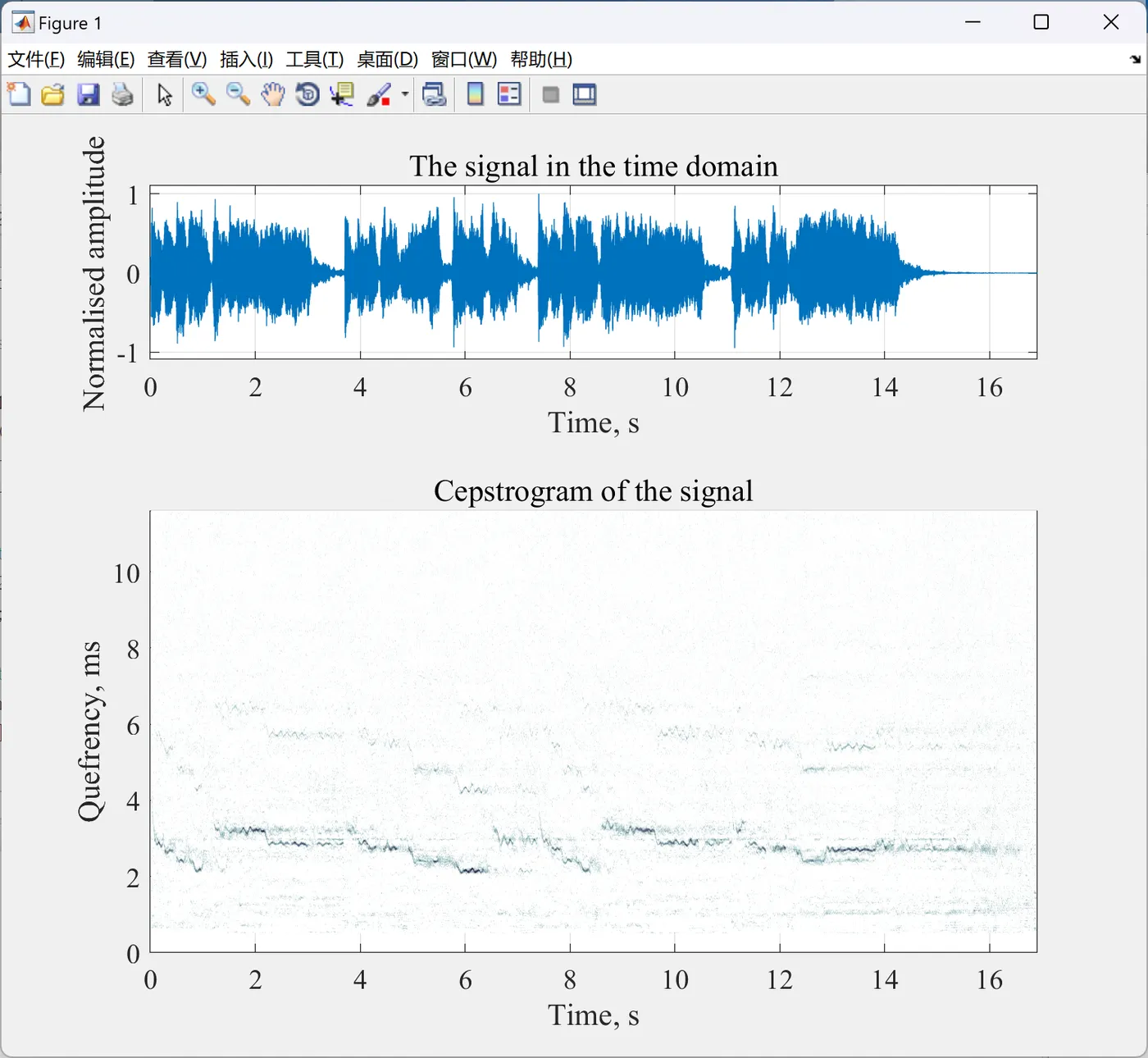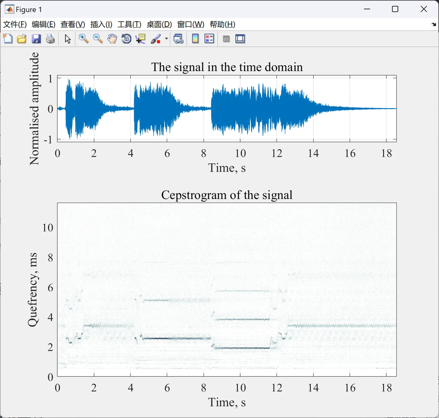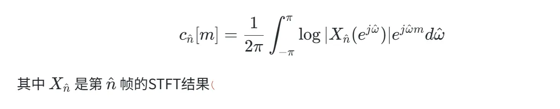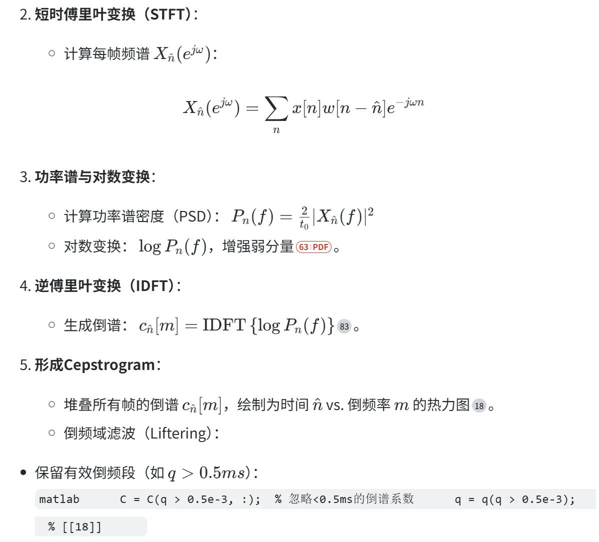 - 短时倒谱:通过对信号分帧加窗,计算每帧的倒谱,形成时间相关的倒谱序列: