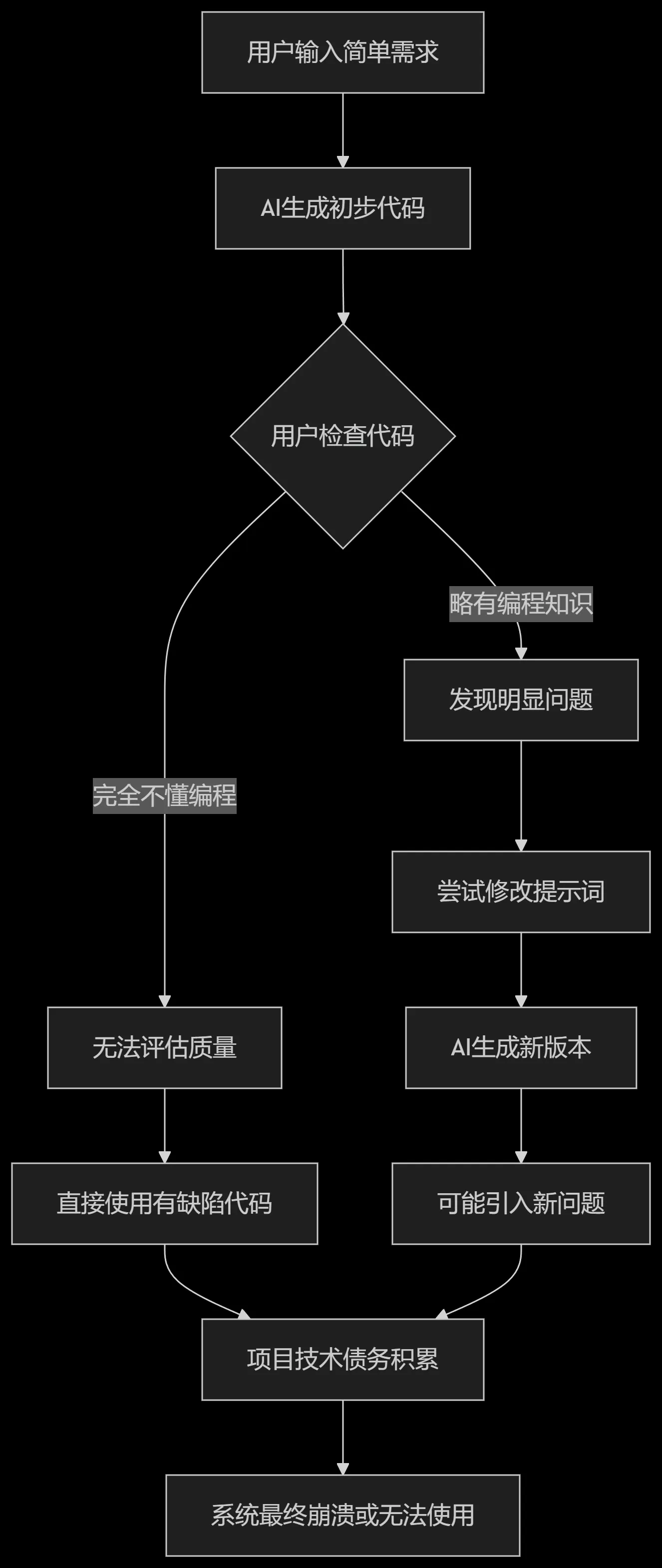 技术债务指快速但不完美实现功能所导致的长期维护成本。在AI编程中,这一问题尤为严重: