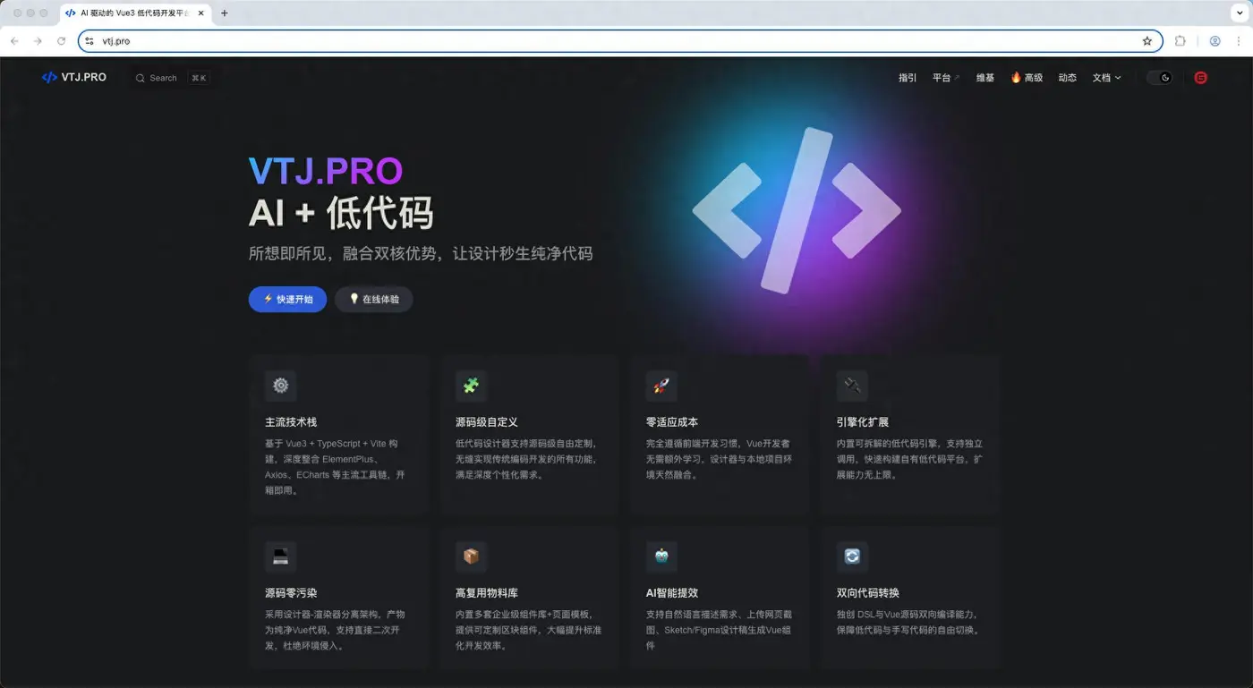 VTJ.PRO作为一个基于Vue3和TypeScript构建的开源AI低代码引擎,自推出以来就致力于为企业提供全方位、一站式应用开发与交付解决方案。