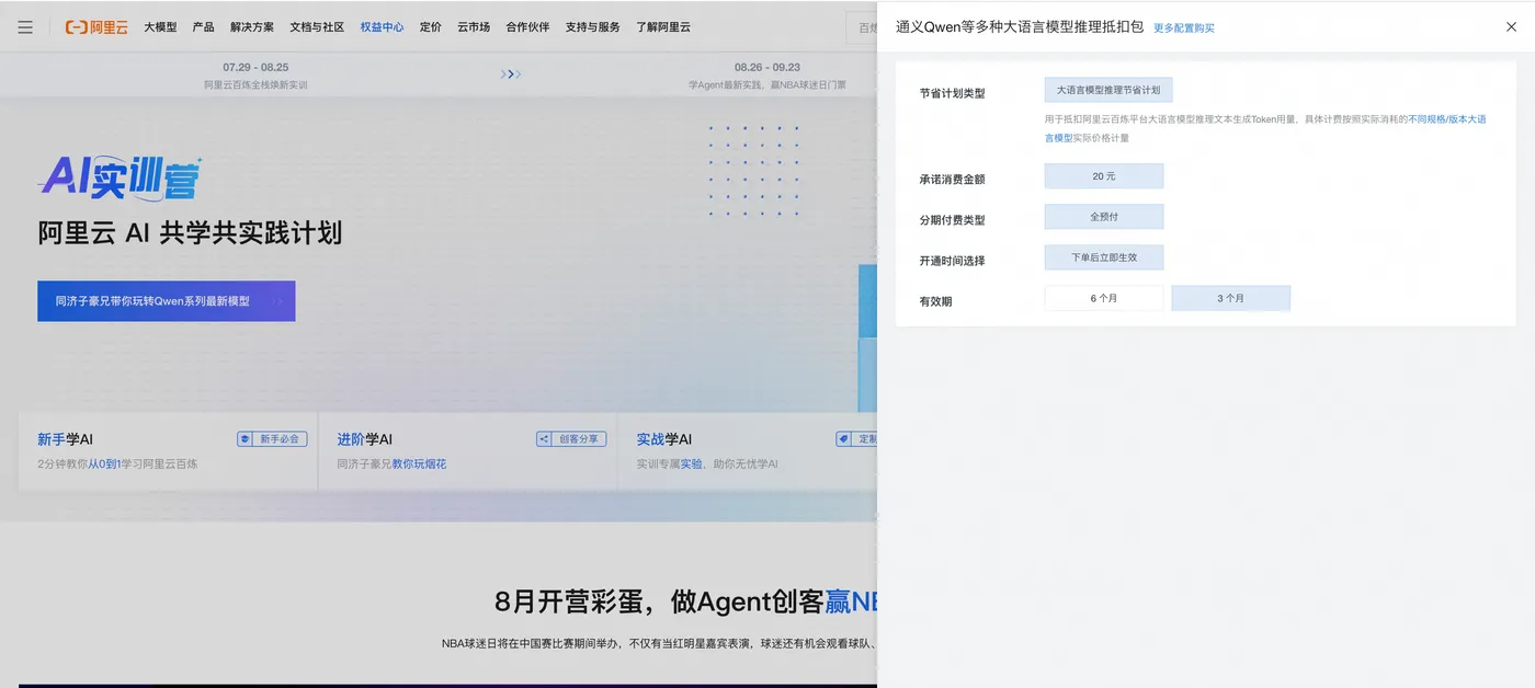- 大模型预付包(阿里云百炼大模型平台资源包)
