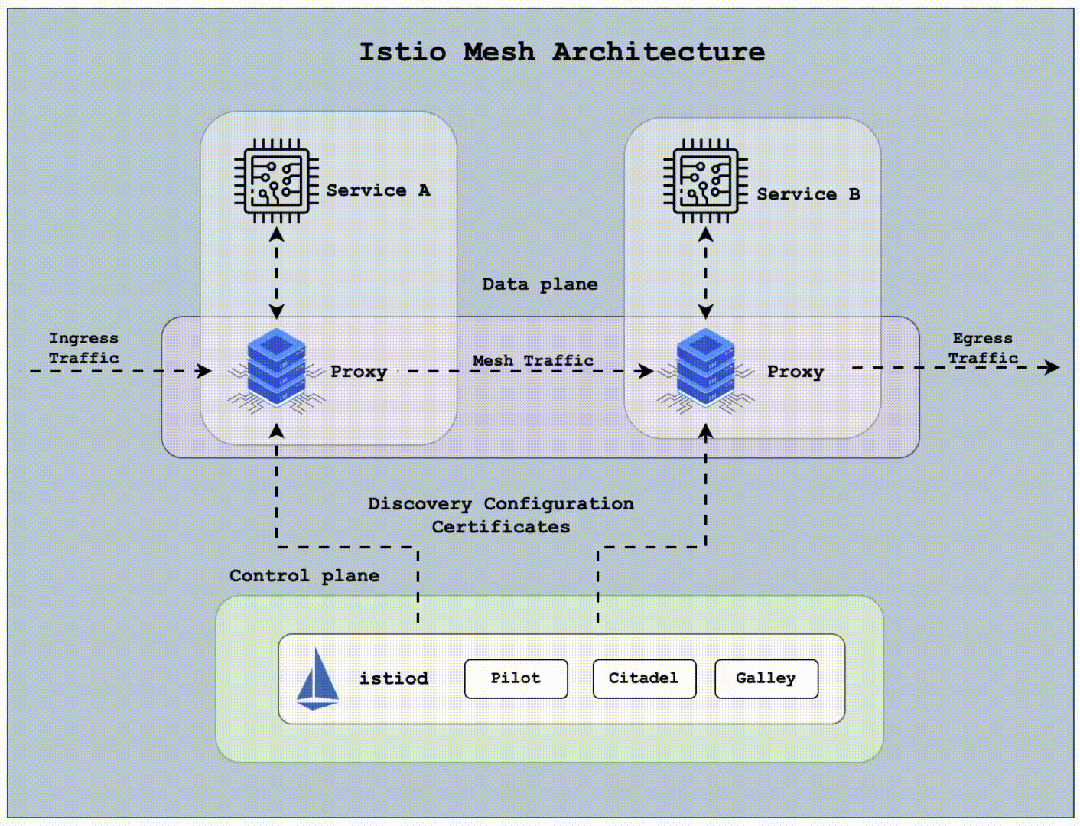 - Istio 将 Envoy 代理部署为工作负载 Pod 中的 sidecar。