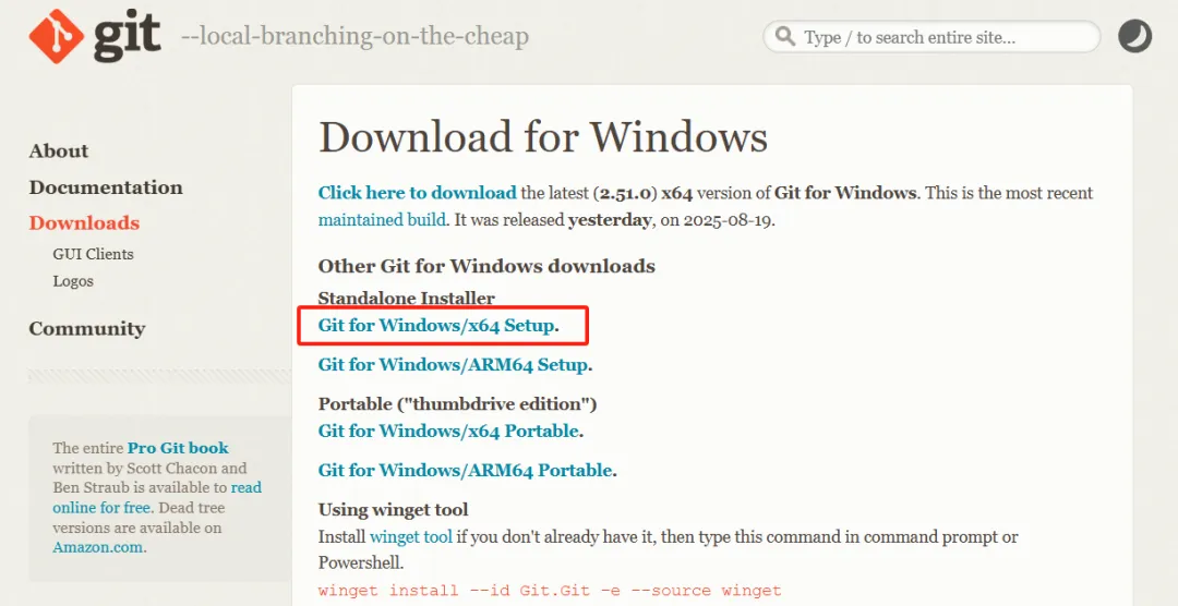 Git For Windows 下载地址:https://git-scm.com/downloads/win