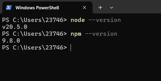 node --version检查 Node.js 版本。运行