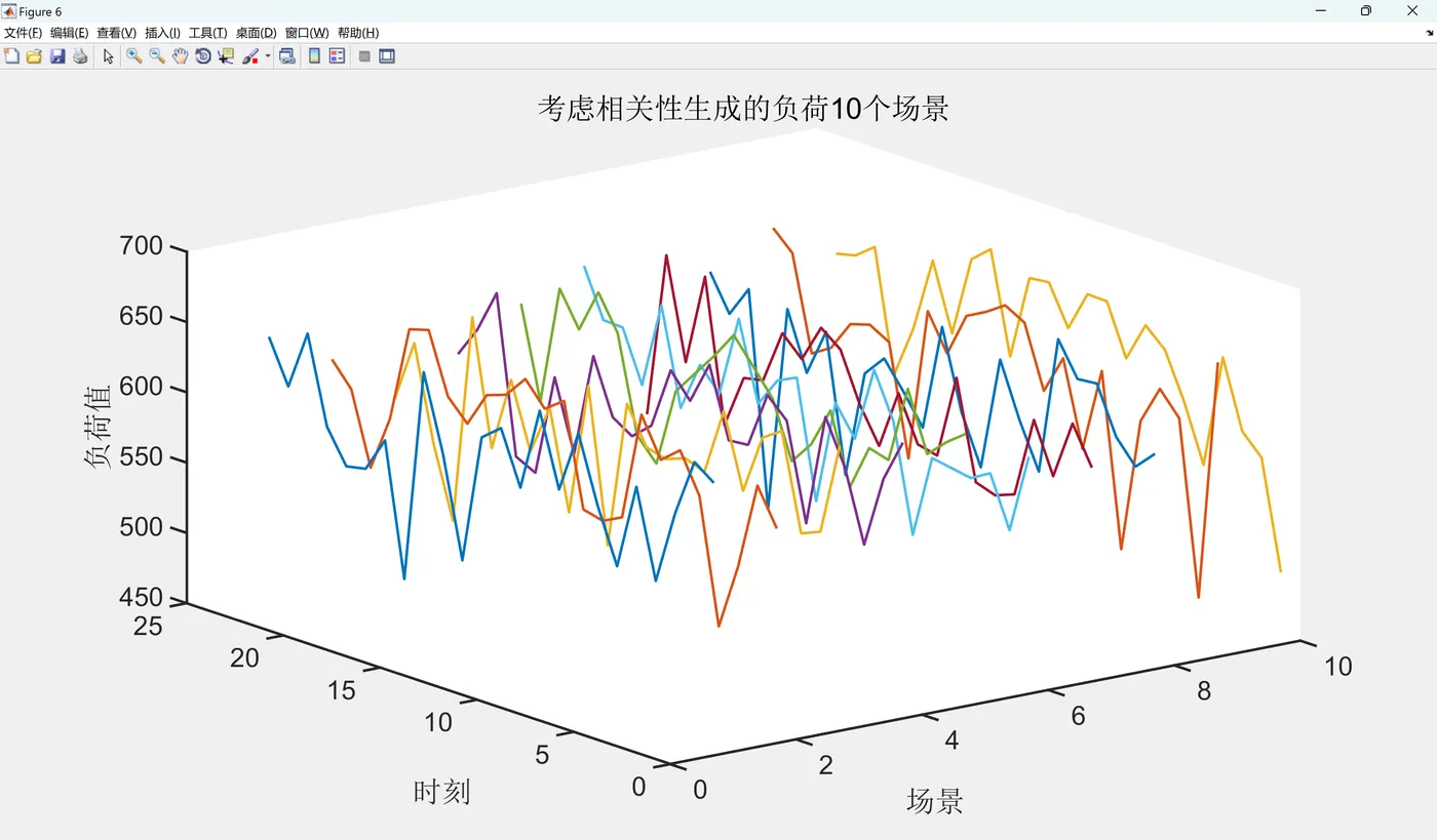 xlabel('场景'); ylabel('时刻');zlabel('负荷值');