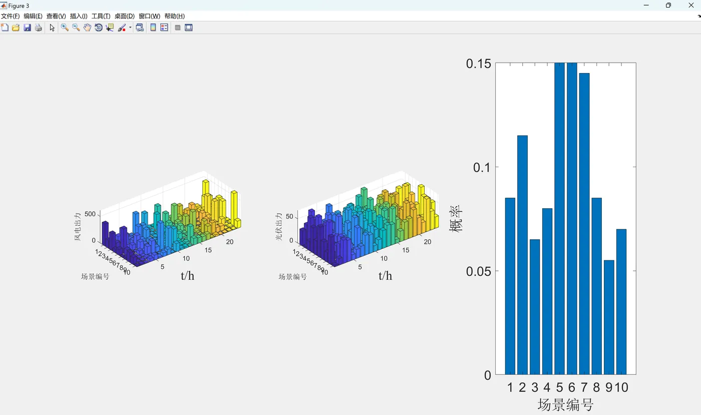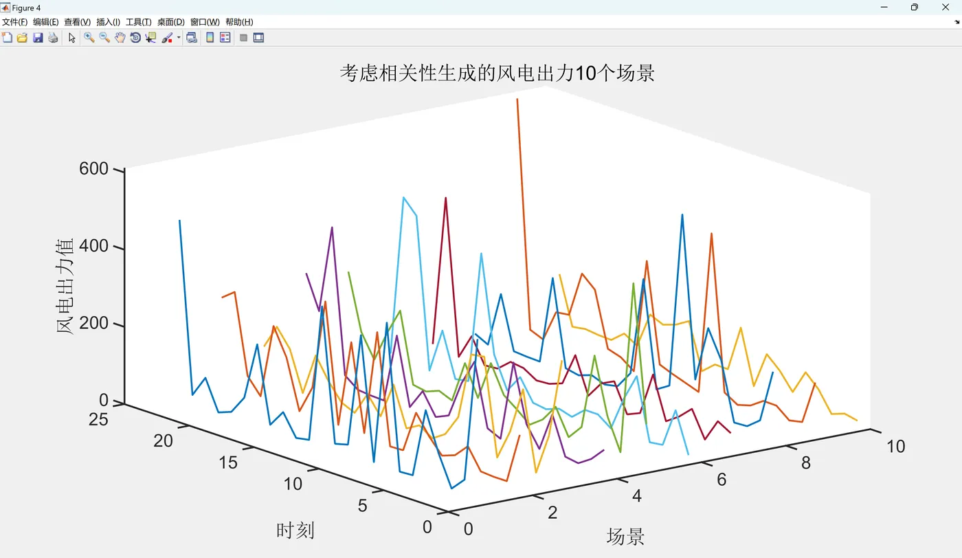 xlabel('场景'); ylabel('时刻');zlabel('风电出力值');