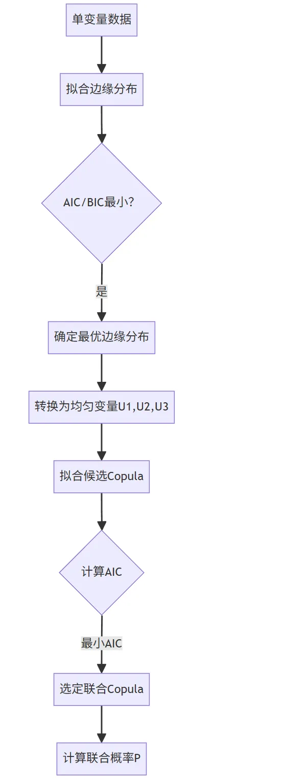 | 阿基米德Copula | Clayton、Gumbel、Frank | 非对称尾部依赖(如洪水、极值) |