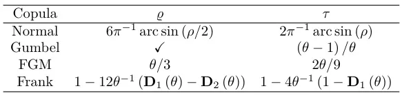 编辑 - Gumbel Copula:参数 θ 满足 τ=(θ−1)/θ 。