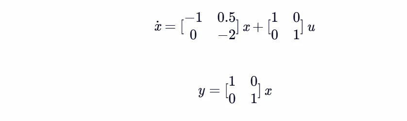 选择一个典型的MIMO系统作为研究对象,建立其状态空间模型。例如,考虑一个双输入双输出(DIMO)系统,其状态空间方程为: