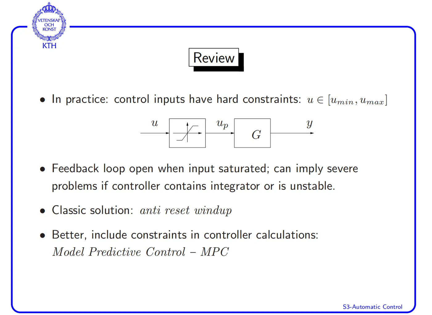 MIMO系统的MPC通常需要处理多种约束,包括: