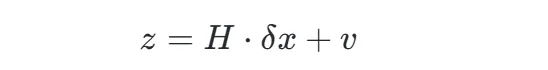 z为观测残差(如GPS位置与IMU积分位置的差值),H为观测矩阵,v为观测噪声。