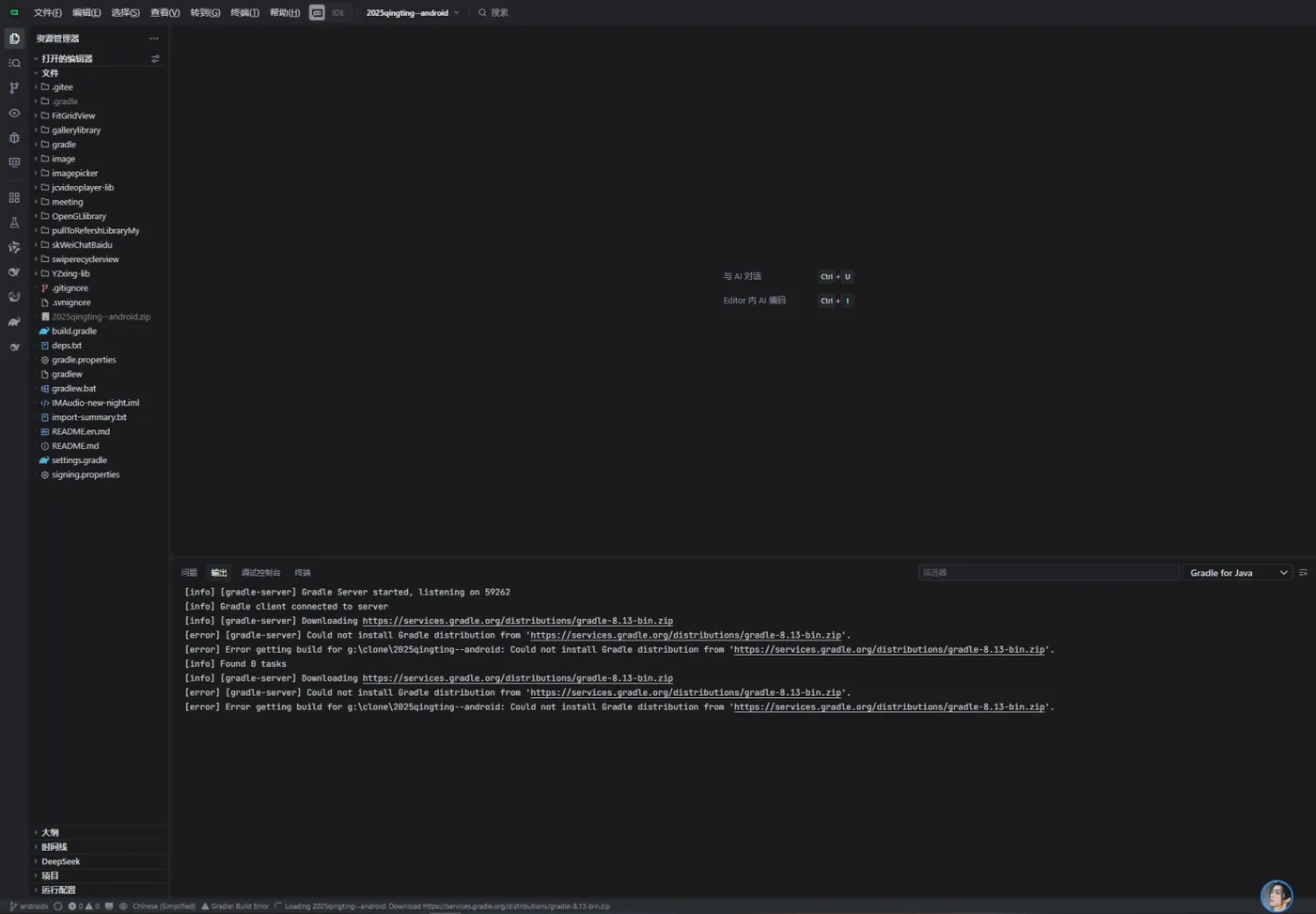 Gradle包装器已成功运行,显示项目使用Gradle 8.13