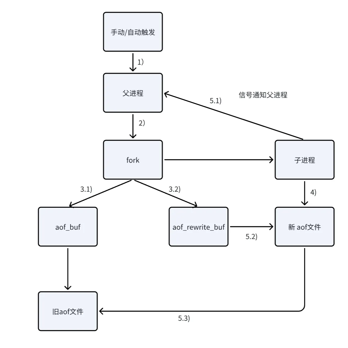 子进程这边,把aof数据写完之后,会通过信号通知一下父进程。父进程再把aof_rewrite_buf缓冲区的数据也写入到新的aof文件中。