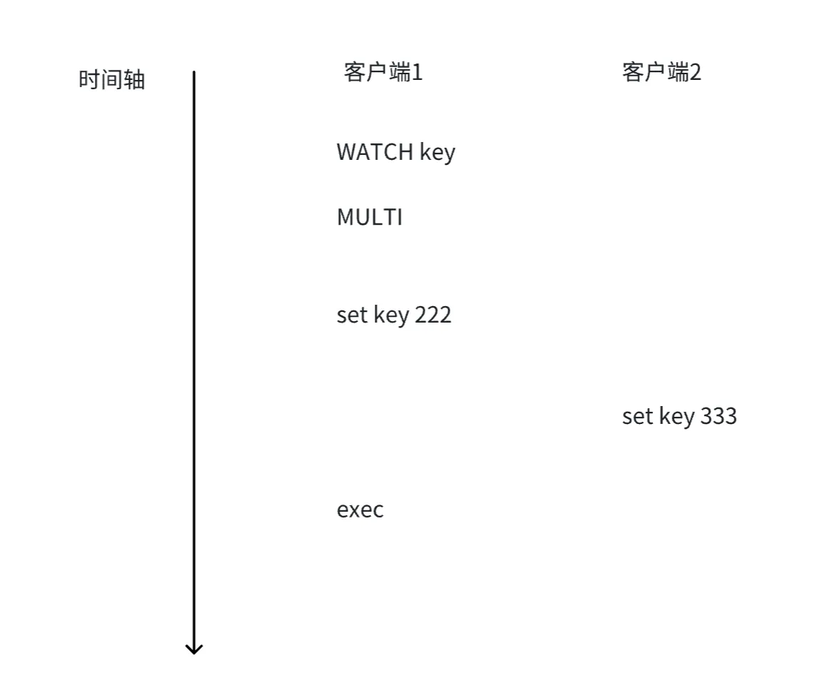 但实际上并非如此,由于客户端1中,必须是exec执行了,才会真正执行set key 222。因此这个操作变成了更晚的操作,所以key的最终值是222,而这也符合事务的特性。
